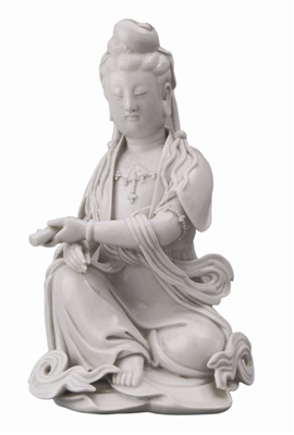 清代持经书披坐观音像 (博及渔人·款),高24厘米