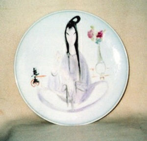 岁月沧桑,“文革”中这些瓷盘砸的砸,散的散,能成套、完整无损的几乎没有。然而我在沈智毅家见到了一套用锦盒装好的十位名家画的瓷盘,非常精致,我十分惊讶!沈智毅说:“我这一套瓷盘前前后后也收集了近四十个年头,最早的数唐云和林风眠,1964年画的,最晚的是刘旦宅2003年画的《马前泼水》。”