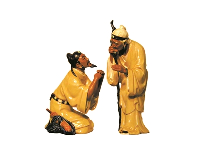 王羲之、李白、米芾等历史人物,自古以来就是石湾陶艺家们钟爱的题材。历史人物的特征,可以从服饰、动作的细节以及情节设定反映出来。庄稼总结其师刘传的艺术心得,以“宜藏不宜露,宜起不宜止”十字概括之。石湾的高手工匠,总是主张以“在情节动作发展到顶点之前的某一顷刻”为人物情节设定,令静止的陶塑体现出丰富的人物内心世界,并具有故事情节发展的想象空间,意境耐人寻味。