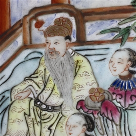 综上所述,我认为这盘的出现可能有以下几种情况。一、嘉庆年间为玉堂仙馆定烧物,不属于外销瓷,而是设计者借用外销瓷的风格;二、玉堂仙馆主人认识老外朋友,比如传教士、外交官等大咖,以此设计老外喜欢的纹饰定烧后送给老外作为礼物;三、嘉庆皇帝定烧送给玉堂仙馆主人;四、嘉庆年间有地位和有权势的人定烧送给玉堂仙馆主人;五、玉堂仙馆自己的定烧物。总之这个盘子的纹饰非常少见,希望有兴趣的朋友共同探讨研究。