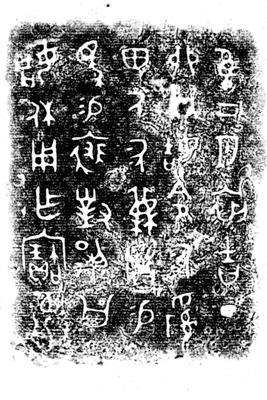 西周顶卣(图6):通高27.5、宽21.3厘米,重3千克。此卣为扁圆形体,盖顶隆起,折沿明显,圈形捉手。器身子母口,鼓腹,圈足有宽边。提梁两端之兽首似羊形,面饰蝉纹。盖与器身四面有较高的扉棱,盖面和器腹饰无地纹的分解式兽面纹,颈部饰相对回顾的卷尾夔龙纹,以浮雕兽首相隔。盖沿和圈足饰两两相对的四组以分尾夔纹组成的兽面纹。盖和器对铭,均4行17字(图7):