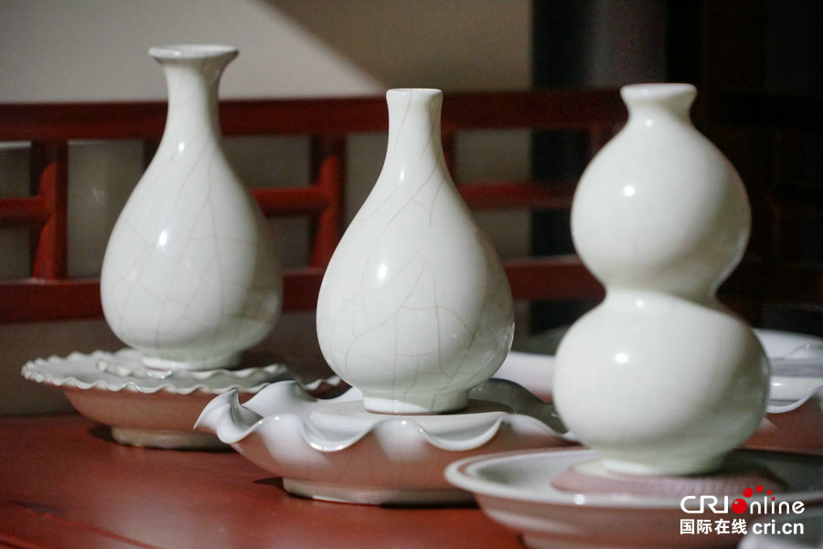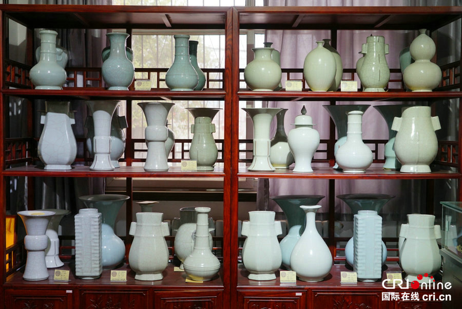 北宋官瓷艺术博物馆展厅内陈列着大量精美的现代北宋官瓷