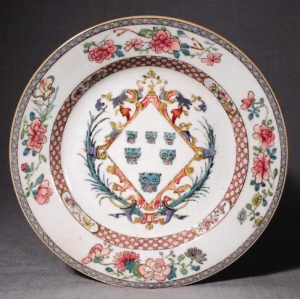 纹章瓷是外销瓷中的一个特殊种类,始于16世纪,于18世纪达到顶峰,因器物表面直接绘有家族徽章图案而得名,是由中国工匠按照欧美订购商所提供的品种、造型、纹饰图案进行彩绘烧制而成,属于“来样加工”的定制瓷器。与普通的贸易外销瓷不同,纹章瓷是为具有特殊身份的皇室成员、政府官员、豪绅贵族、特殊协会或公司所定制的,制作上最为精美,在当时欧美属于顶级奢侈品,堪称外销瓷中的“官窑”。