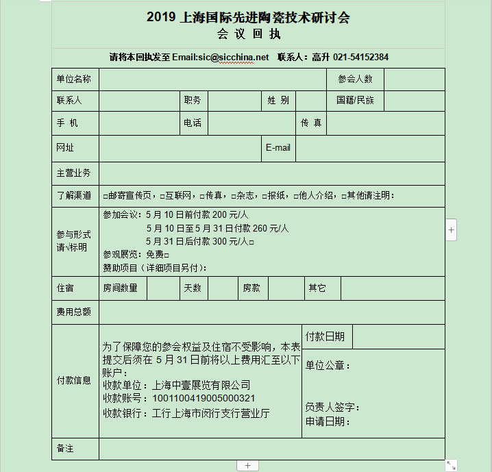 此次会议还将同期举办“第十届上海国际工业陶瓷暨新材料展览会” ,地址在国家会展中心(上海)。同期活动:2019国际蓝宝石及晶体生长技术高峰论坛、2019上海国际激光材料及应用论坛、2019上海国际石墨烯研讨会、2019上海国际 3D 打印技术创新应用研讨会、2019石墨烯学术沙龙、2019中韩高端粉体论坛、 2019上海国际纳米生物医药科技研讨会、2019 中国国际纳米之星创新创业大赛上海分赛区等,同期展览:展览面积超 25万㎡、12万专业观众-世界环保博览会平台。