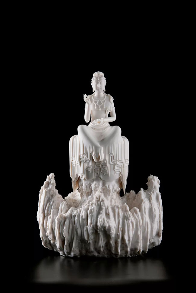 李璋高是德化白瓷界具有创新精神的年轻艺术家,已经初步形成了自己独特的艺术语言,他的作品以佛像和仕女为主,尽管也是传统题材,但他的造型风格与众不同。此次将在抱厦展厅展出其近年来精心创作作品30余件。