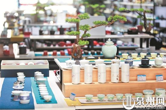 走进多宝堂,橱柜中明代经典德化名瓷《渡海观音》《白釉文昌帝君》等复原作品,绽放出熠熠生辉的独特魅力。“参展商到茶具城,不仅能看精美茶具,还可以欣赏到德化的国瓷、国礼,了解更多德化陶瓷文化。”多宝堂的负责人徐思敏说,以往国宝只能珍藏博物馆,为了让经典再现,走进寻常百姓家,他们与德化陶瓷博物馆协商合作,获得独家授权“让国宝复原”。