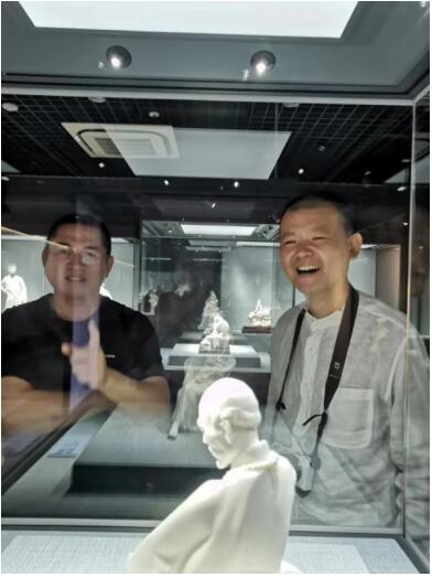 我们在看产区陶瓷作品的时候,有时候会是两种角度,即你是把它当成工艺品来看,还是当成纯艺术品来看?是当做商品来看还是当做艺术作品来看?这里面是有差别的。我也跟他聊过,前面二三十年做的东西一直也是有变化的,我倒希望到了后面,变化还可以再大一点,譬如可以在创作中更多一点儿现实题材的作品,这样更能体现你作为一个艺术家或者陶瓷艺术家所应有的一种担当。 从商业上看,之前你做的肯定是很成功的,说明你之前这么多年的东西肯定是很受大家欢迎的。但是我从一个美院教师的角度来讲,我觉得商业上的成功和学术上或艺术探索上,还是有一点点差别的。既然商业上已经做到这个程度了,可以拿出一部分时间做一些纯艺术探索的东西,这些东西不一定是最好卖的,但可能能显示出你在当地瓷塑领域里,你能比别人走得更远。做罗汉或观音等这些德化经典的题材,肯定好卖,但是从艺术探索或者从创作和学术的角度来讲,新的题材可能更难表现,也更能体现出你对艺术的一种判断和认识。你后期创作了一部分现当代题材的作品,如《弘一法师》《鲁迅》就是新的题材和技法,这些作品包括《掏耳罗汉》等作品,已经超出了德化传统瓷塑技艺的范畴,我觉得这就是一种新的有意义的探索,我希望你可以在这方面再往下发展一步,可以做的再深入一些。”