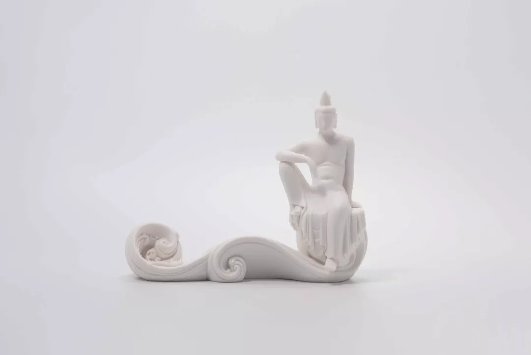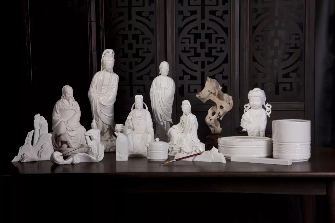 白瓷变成文房陈设是必然的,其中的因素是基于什么?第一,基于中国人对玉的喜爱。我们一到德化时,当时张校长就跟我们讲,德化白瓷跟其他瓷不同的特点,薄如纸、声如罄、白如玉,它的温润确实跟山东淄博的骨瓷白不一样,它那种白是半透的白,它指向了中国文人的君子情怀。所以对白瓷的喜爱,就像当年孔子把自己的品格比喻成玉,而不是琉璃,就是他在那种透和不透之间,白又不是那么白,有点温润的感觉,有点体现了文人内心的节操。
