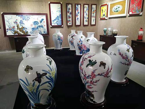 本次展览共展出了林卫国师徒精心制作的二百余件工艺品,琳琅满目的青花瓷、青花斗彩、青花釉里红、古彩、粉彩、新彩等令人目不暇接。