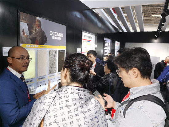 【谭宜颂】此次主要受到佛山市住建局邀请而参展的。中国住博会作为建筑建设行业最具影响力的专业展会,现场吸引着数以万计的专业人士参观。欧神诺有幸参展,是对我们实力的认可。我们送展了四大新型建筑陶瓷产品,包括多晶透光砖、纳米抗菌砖、空气调湿砖、石墨烯发热砖。