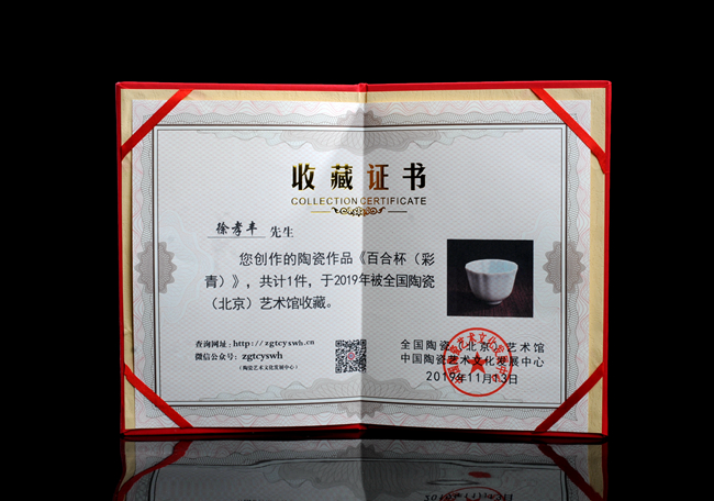 《百合杯(彩青)》于2019年被全国陶瓷(北京)艺术馆收藏