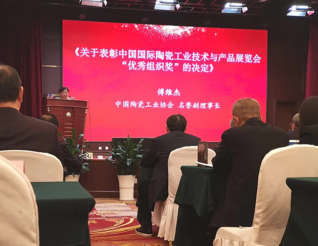 会议现场,傅维杰理事长对2019年广州陶瓷工业展给予了高度评价,同时感谢各陶瓷产区政府商协会、企业和各级领导积极组织企业参展参观,为展会出谋划策,助力展会圆满成功,得到国内外行业人士的广泛认可。并在会议现场对2019广州陶瓷工业展期间积极组织参展参观的产区政府、商协会、媒体予以表彰。