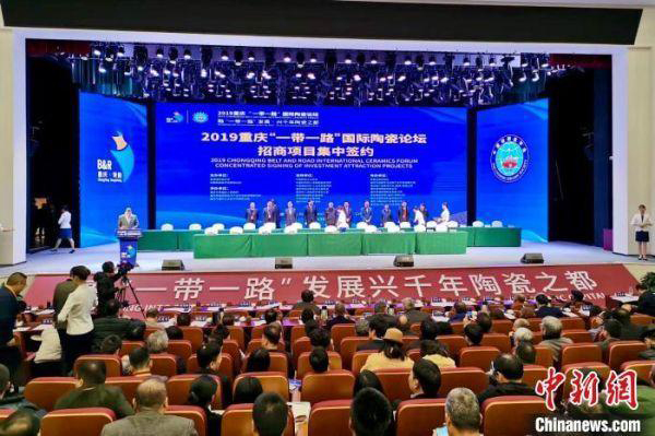 2019重庆“一带一路”国际陶瓷论坛招商项目集中签约现场。(周奇/摄)