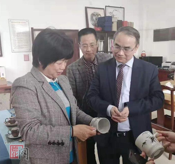 11月27日至28日,上海艺术品博物馆胡木清理事长一行来到德化进行考察,并深入陶瓷博物馆、陶瓷企业、大师工作室,实地了解我县陶瓷文化和产业发展情况,洽谈德化上海两地艺术陶瓷市场营销合作,助力德化陶瓷跨越发展。