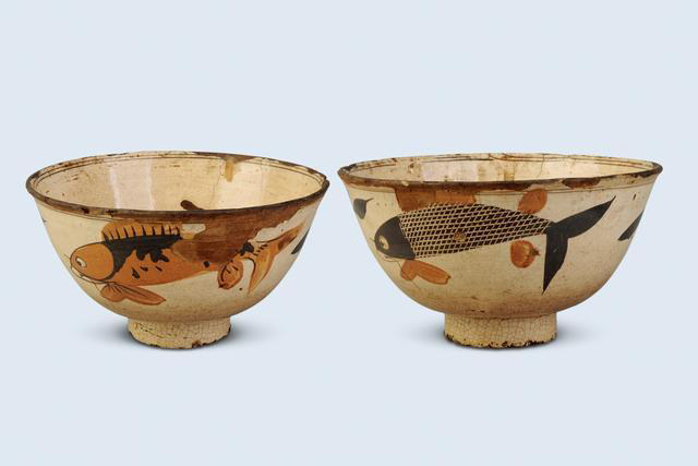 图5 明 磁州窑白地黑褐彩双鱼纹碗
