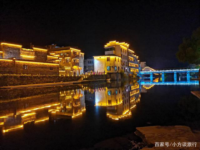 小方最喜欢的是晚上的瑶里,白天看上去平凡的水上房屋在晚上绽放出格外耀眼的光芒。每到夜间,暮色变暗,这里的房屋变化亮起它的金黄色的外灯,倒映在清澈见底的湖水中,湖面上的桥发出的是蓝色的霓虹灯,金黄色,蓝色,在黑夜真绽放出格外动人的曙光,给这座神秘的小镇披上了华丽的外衣。行走在其间,光芒照耀在自己的身上,仿佛被赋予了美好的祝福,周围环境是寂静的,偶尔传来潺潺的流水声以及人们的嬉笑声。