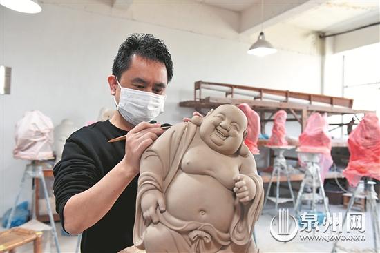 近日,德化县建窑陶瓷研究所所长、福建省工艺美术大师吴志勇创作的《蒲团观音》《三十三态观音》和《文昌帝君》3套35尊德化白瓷雕塑艺术作品入藏中国美术馆。多年来,吴志勇力求透过陶瓷艺术表达自己内心的思想,追求艺术本真,形成自己独特的创作风格。据介绍,此次入藏的作品分别于2014年、2016年和2017年创作完成,除了《蒲团观音》《文昌帝君》两件作品高90厘米以上,《三十三态观音》均在20至25厘米之间。图为吴志勇在创作中。(李宏图 摄)