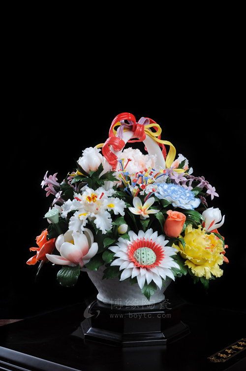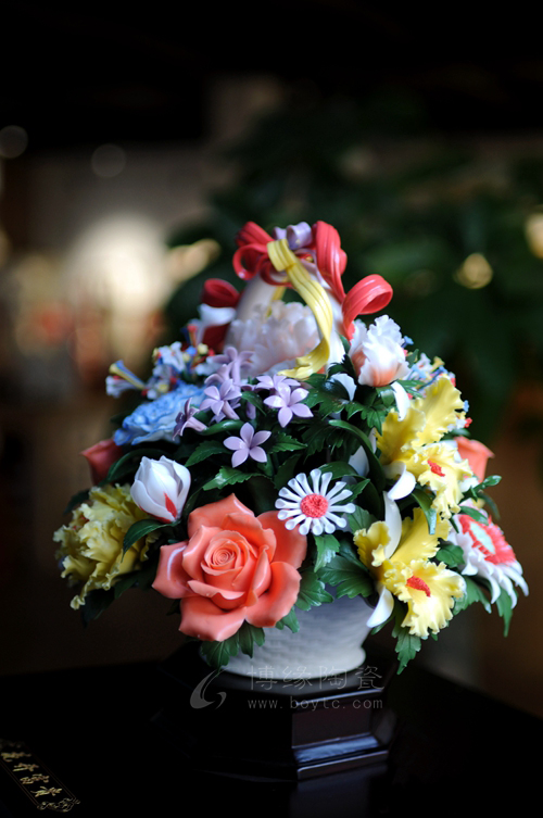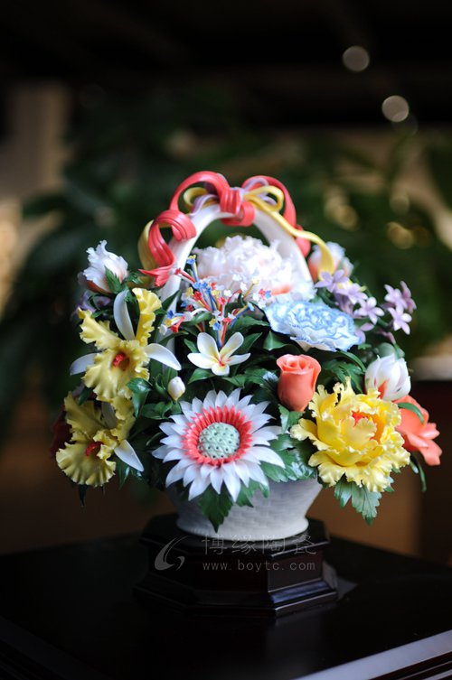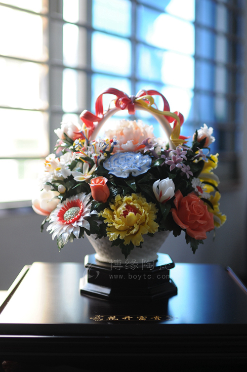 瓷花作为陶瓷艺术品有着其独特的魅力所在,瓷花创作并不以单一形式表现,而是与其他的器物搭配,并突出瓷花的主题。