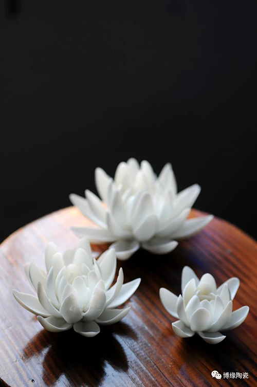 德化做为“中国白“的故乡,其瓷土可塑性好,表现力强;德化的陶瓷艺术家以德化特有的温润如玉,素净淡雅的”中国白“为胎质,塑造了千娇百媚的鲜花。
