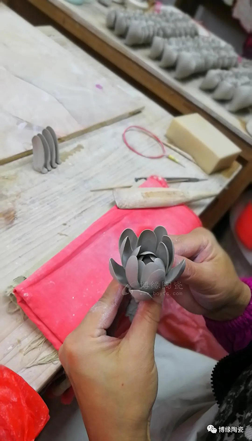 手工制作,经堆,捏,雕,塑,刻等,过程使用几十种制作工具。