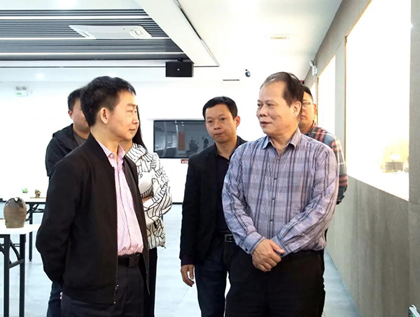 4月27日上午,福建省陶瓷行业协会会长陈建新一行到德化县陶瓷发展委员会办公室二楼展厅观看首届德化“瓷谷仙境”柴烧作品展。德化县政府副处级干部徐文福、陶艺协会会长孙义渊、陶瓷办相关负责人等陪同观展。