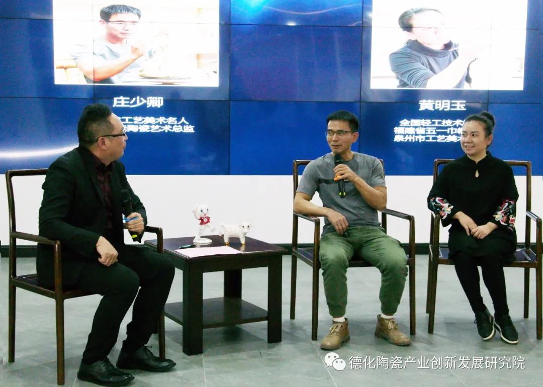 沙龙分享会上,陶瓷大师们切入“创新创作思维”主题,各自分享了所认领的牛瓷分享各自创作心得,让现场看到大师们的独具匠心;企业代表则从市场的角度出发,就如何将德化牛瓷推向世界提出了自己看法;德化陶瓷产业创新发展研究院院长赵鹏从设计的角度看问题,指出“设计+科技”是大势所趋,给德化未来的陶瓷创作提出了新思路。