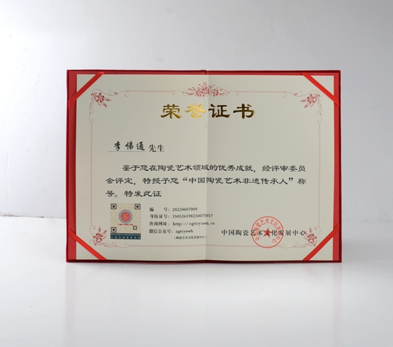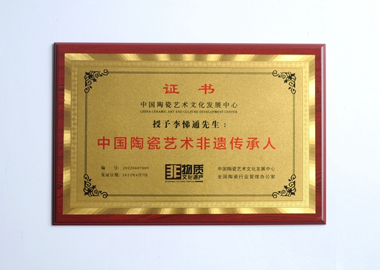 国家一级技师,高级工艺美术师,中国陶瓷艺术非遗传承人,中国当代工艺美术大师,中国陶瓷艺术家。