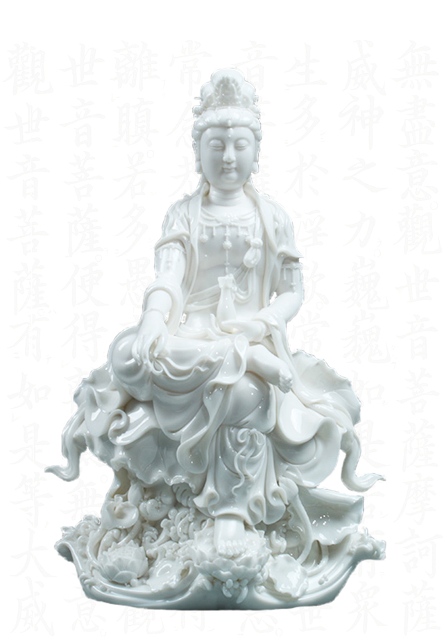 德化窑与瓷观音的制作可追溯到宋代。元代时,以观音为主的德化白瓷雕像就十分流行。在今日,观音依然是中国工艺美术中深受欢迎的传统题材。
