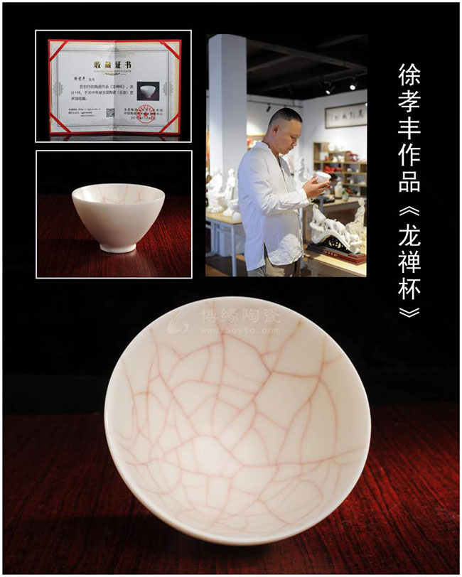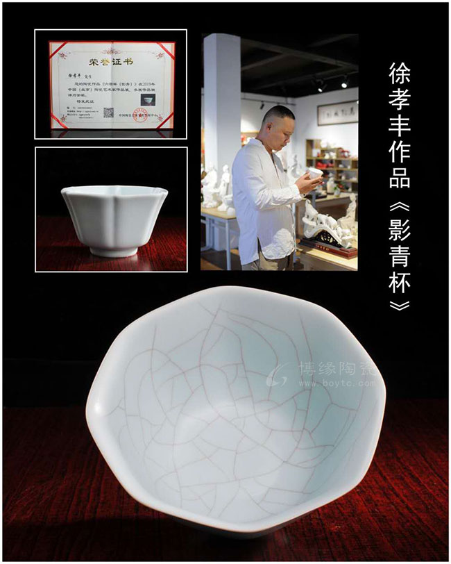 徐孝丰先后近20年从事陶瓷设计创作工作,特别对汝瓷制作有较深入的研究,其设计制作出一系列独具特色的汝瓷作品,造型精美、品质优良,深爱广大客商好评。汝瓷在我国宋代已位居汝、均、官、哥、定五大名窑之首,原盛产于河南临汝,隋炀帝大业初年(即公元605年),置临汝为汝州,“汝州”因而得名。汝瓷烧制始于唐朝中期,盛名于北宋,北宋后期宋金战乱不断,兴盛前后不过二十余年,随着北宋的灭亡,汝瓷工艺也随之断代。为了更好的了解汝瓷,徐孝丰亲自深入汝窑的原产地河南,了解汝瓷文化,而后徐孝丰又深入台湾与当代的制作艺术家交流学习汝瓷制作。