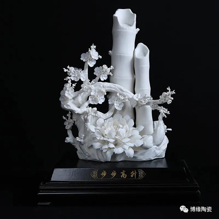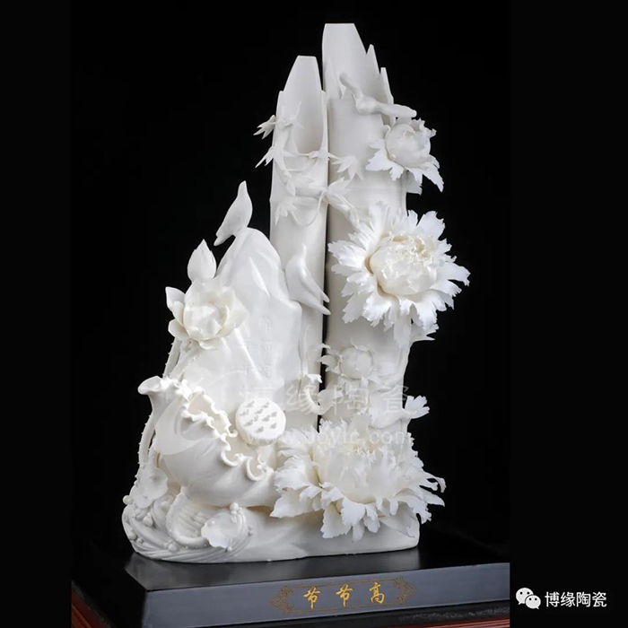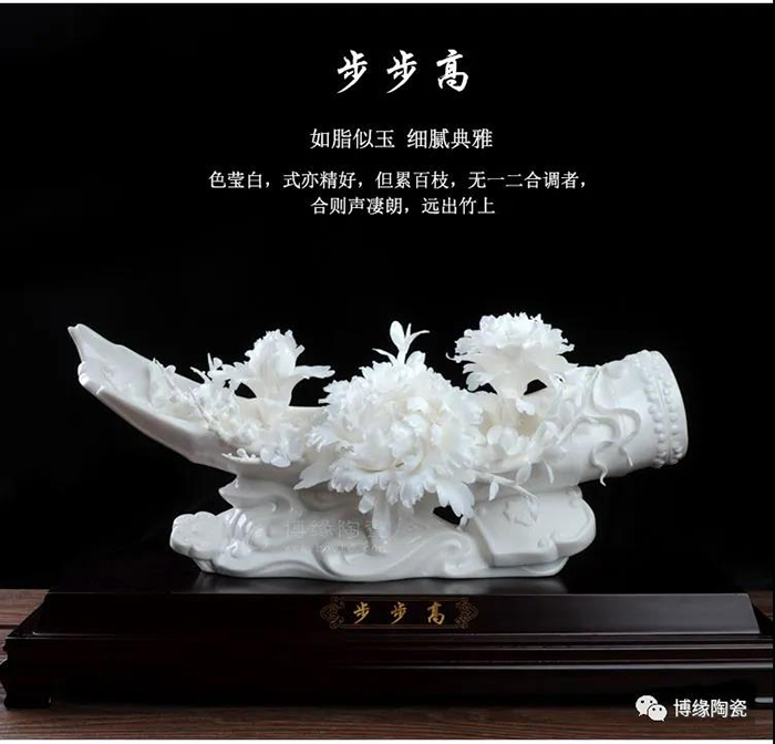 德化做为“中国白“的故乡,其瓷土可塑性好,表现力强;德化的陶瓷艺术家以德化特有的温润如玉,素净淡雅的”中国白“为胎质,塑造了千娇百媚的鲜花。