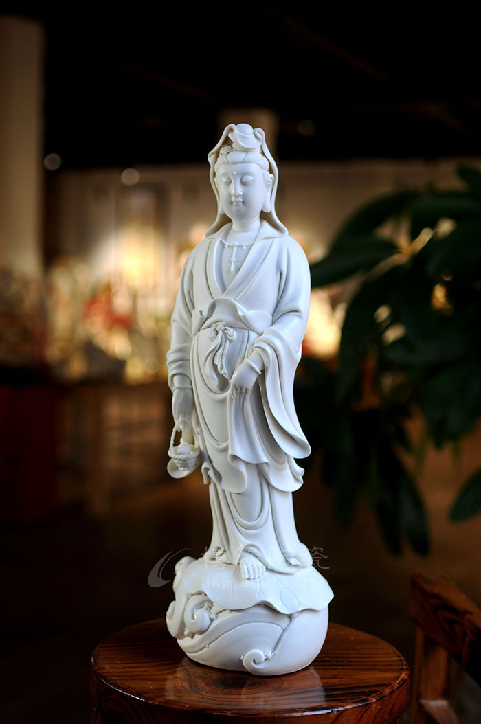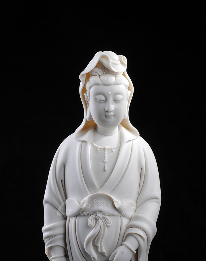 德化瓷器,以白瓷为最;白瓷之中,又以佛像为最。德化白瓷所塑佛像有性格鲜明、造型优美、神态逼真、风格洗练的特点。有一种单纯的雕塑美和原材料的质地美,最能体现佛教朴素、平和的思想。