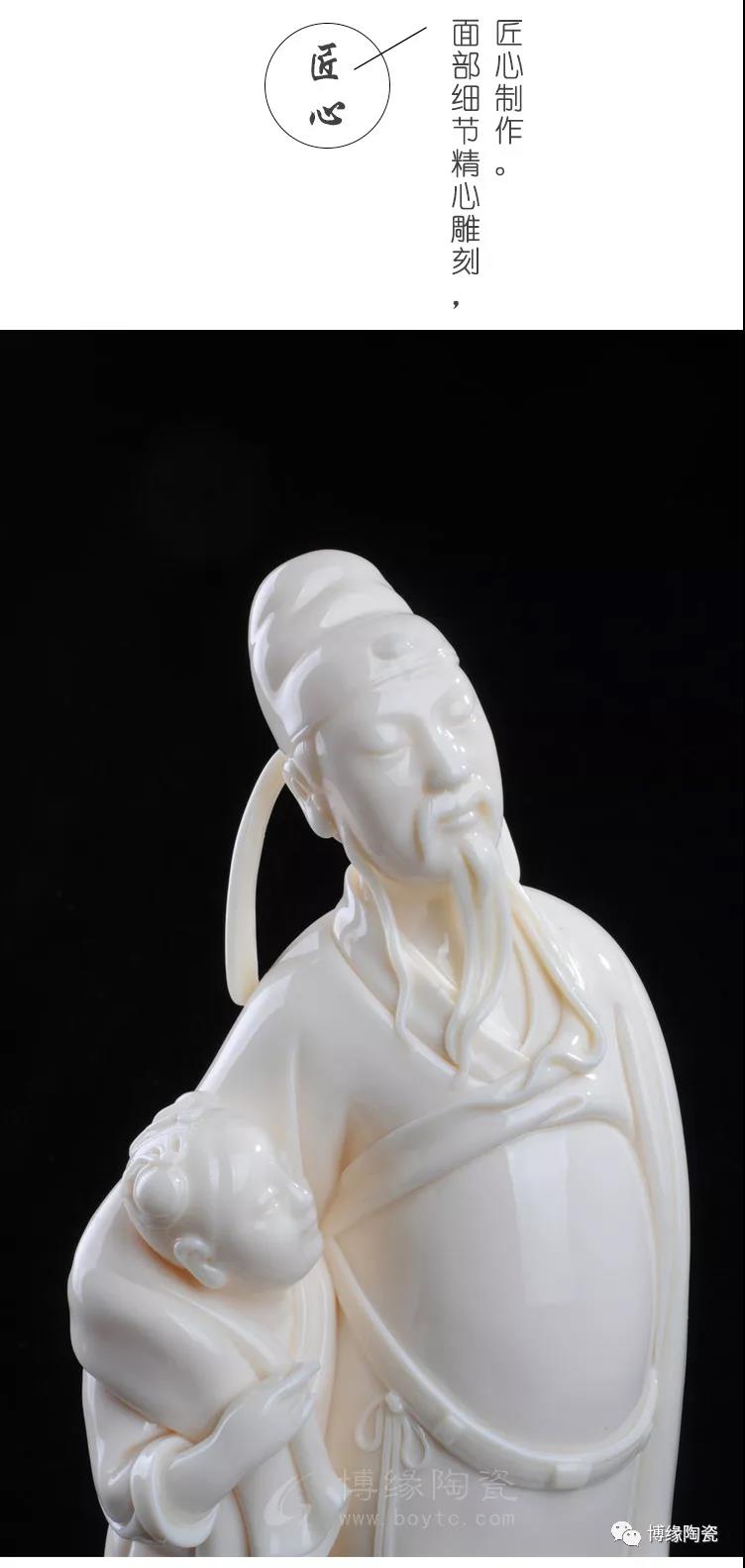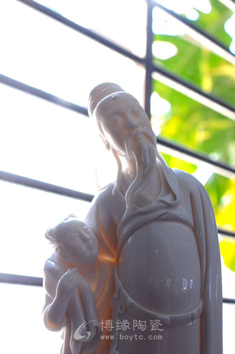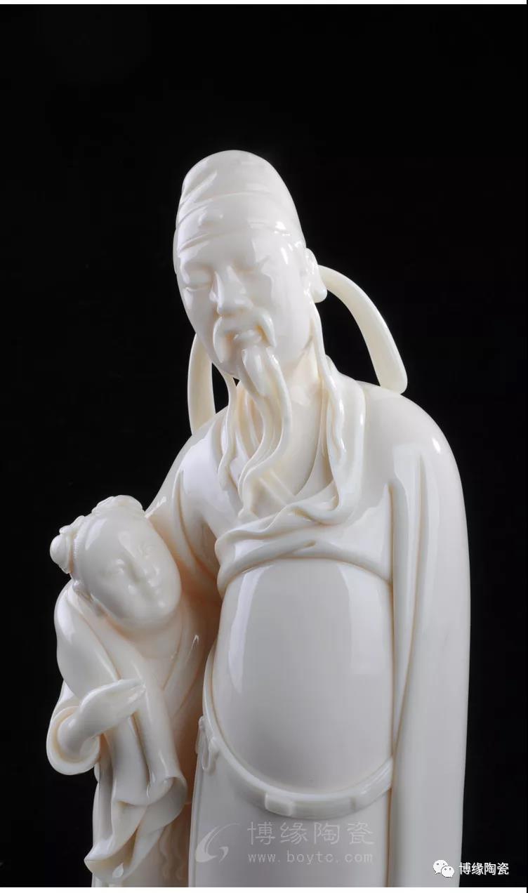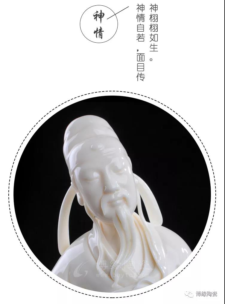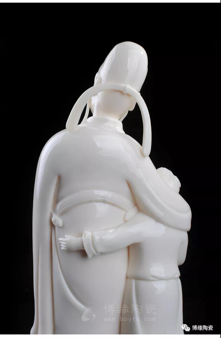 德化白瓷细腻、莹澈、坚脆、明净,玉石般的光芒闪动着圣洁、高傲的精神气质。