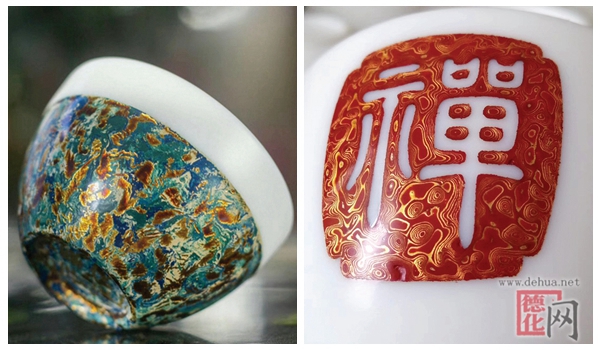 所有技术问题都只能靠自己摸索。他一遍又一遍地回看纪录片,从视频里学习犀皮漆工艺,也特意去请教了甘而可大师。功夫不负有心人。历时将近半年,终于成功将凝脂似雪的玉瓷茶杯与古朴典雅的大漆融为一体,创作出第一个富有德化本土特色的瓷胎漆器茶杯作品。“当时遇到最大的问题是大漆很难附着在温润细腻的玉瓷表面上,经常在打磨的过程中,或遇热的时候就脱落了。”徐华文回忆道。