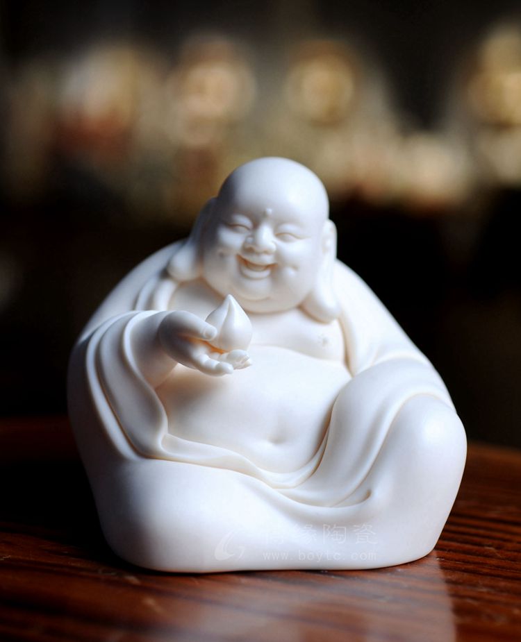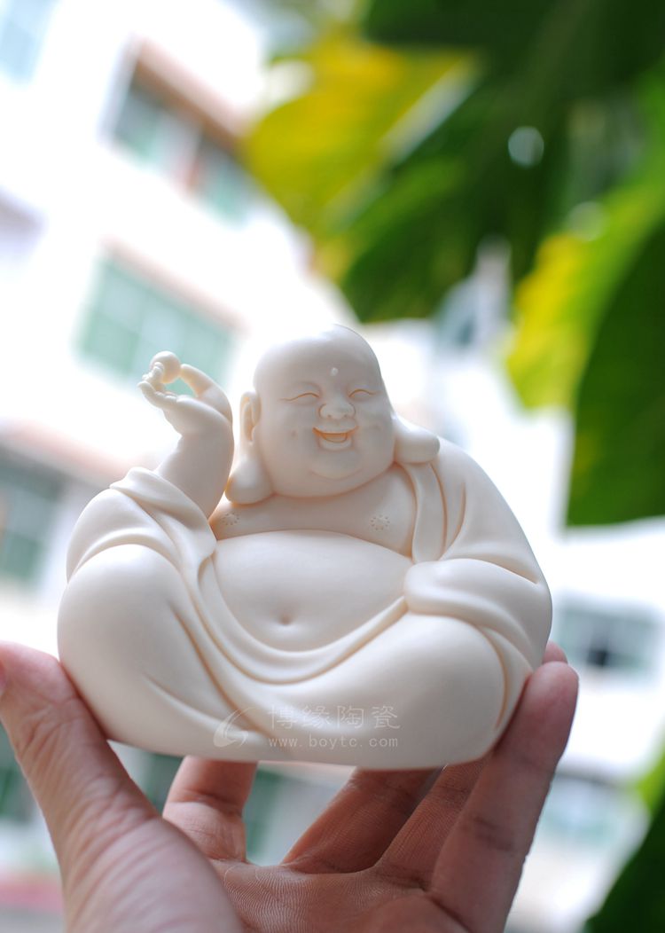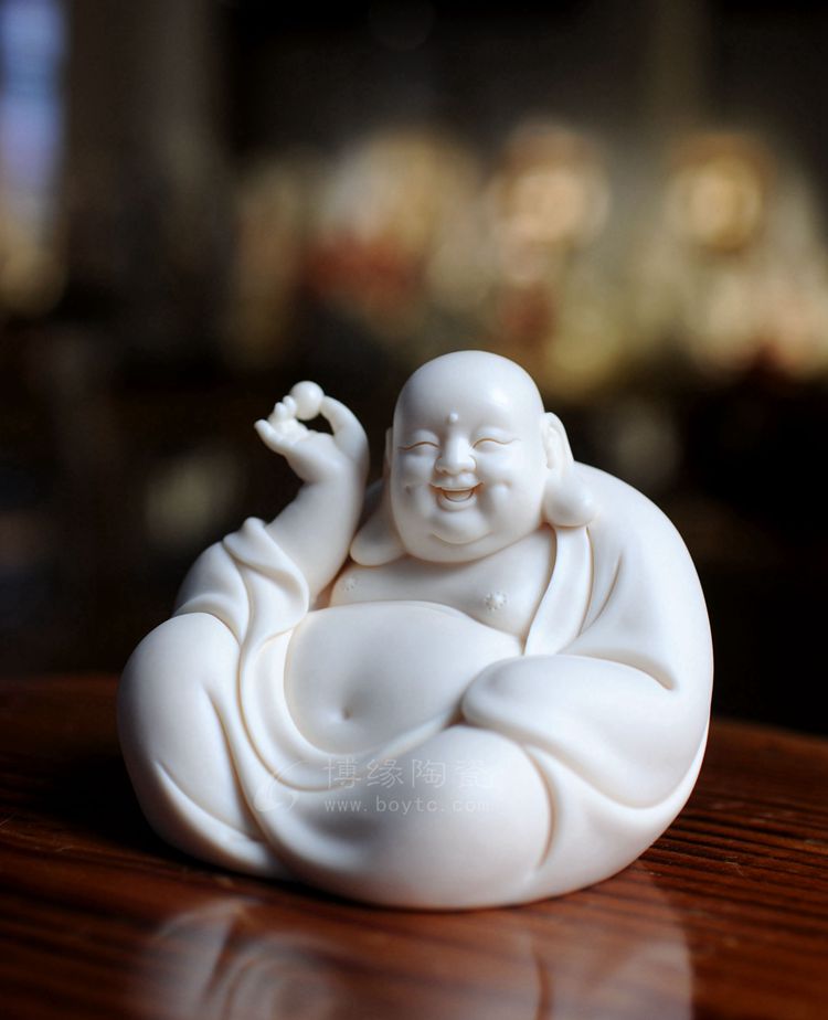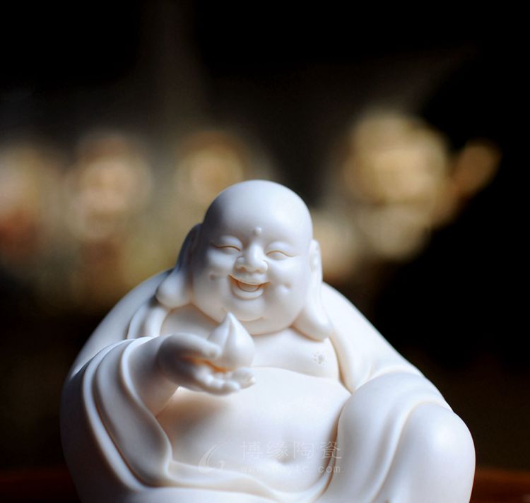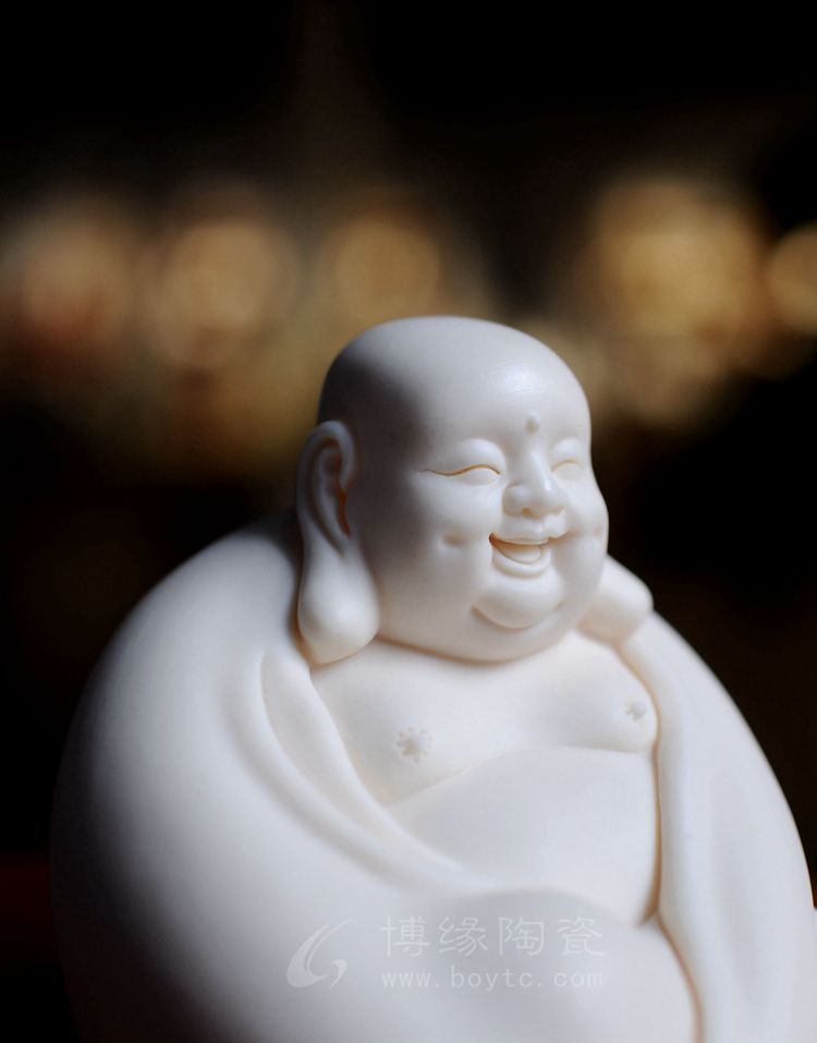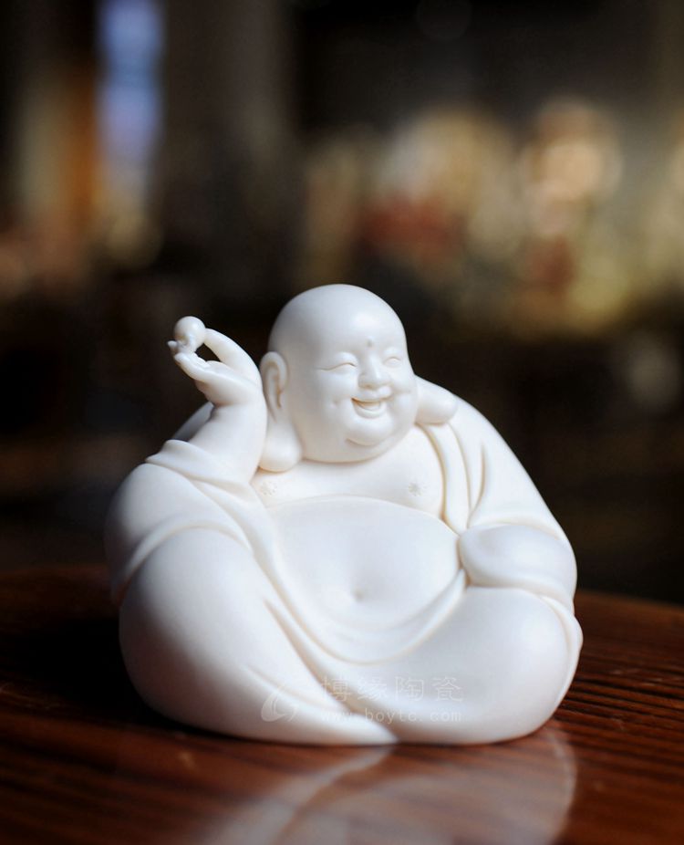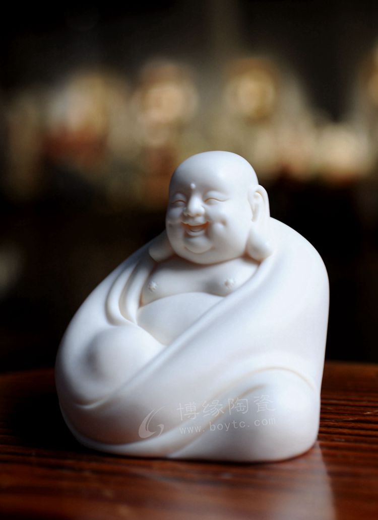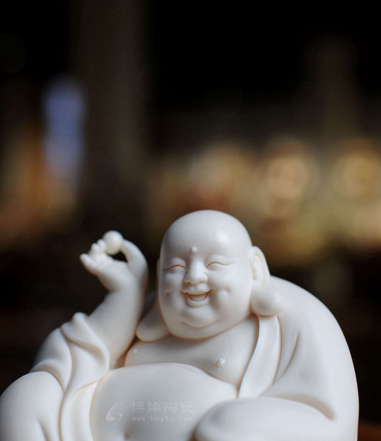 德化瓷之中,又以佛像为盛名。德化瓷所塑弥勒佛像有性格鲜明、造型优美、神态逼真、衣纹流畅、风格洗练等特点。