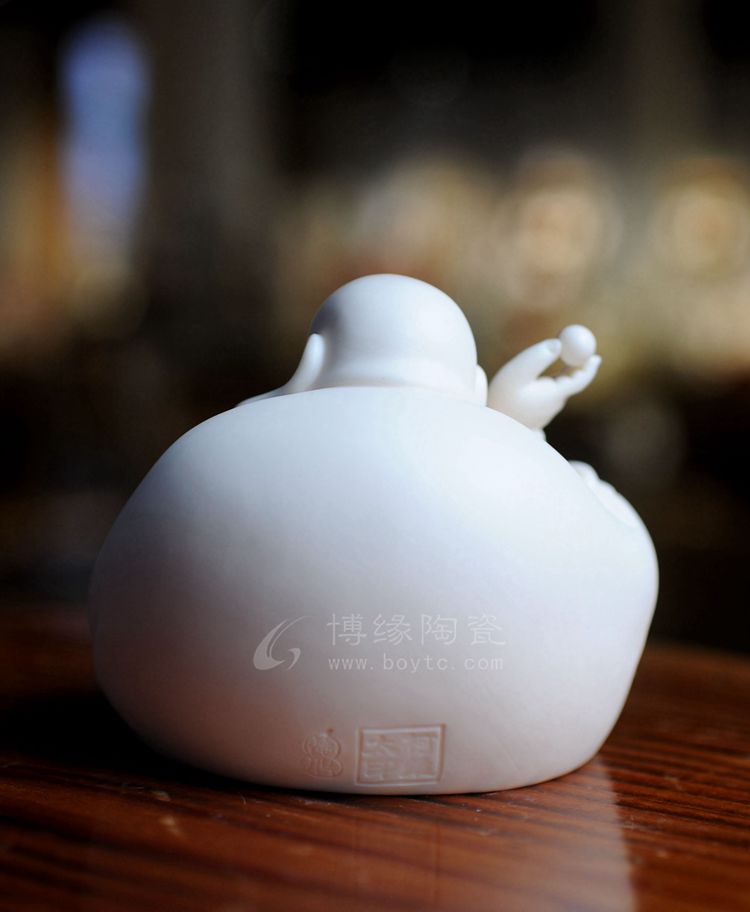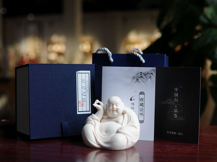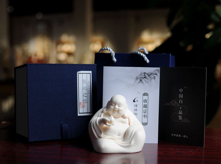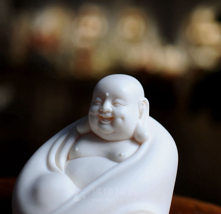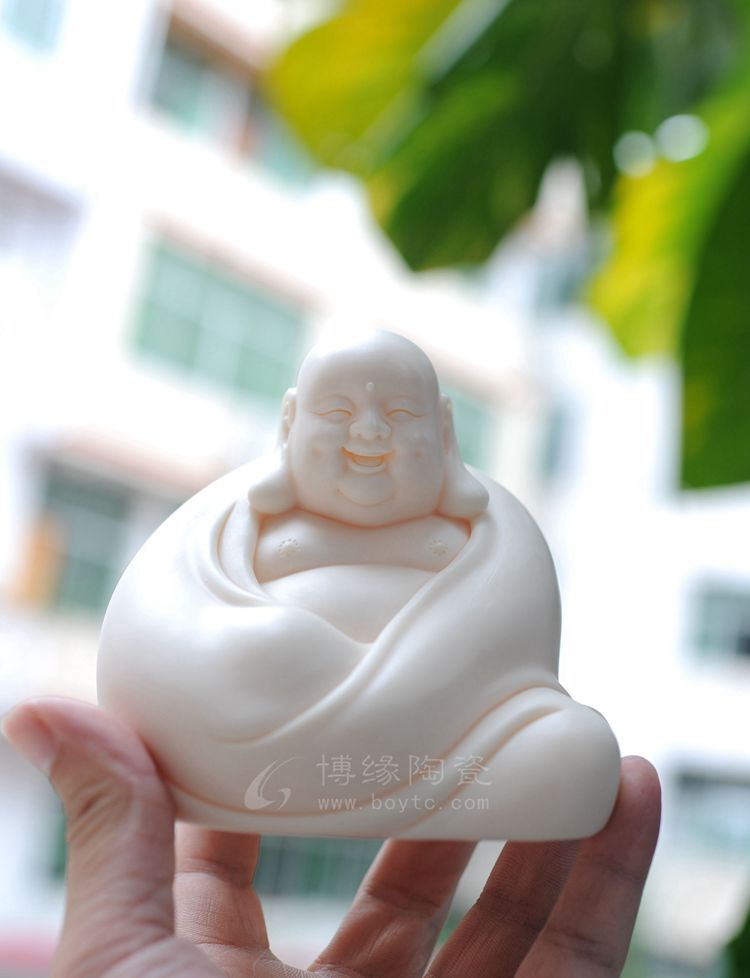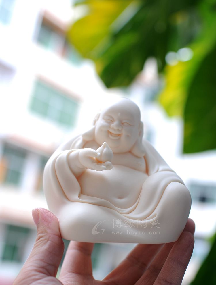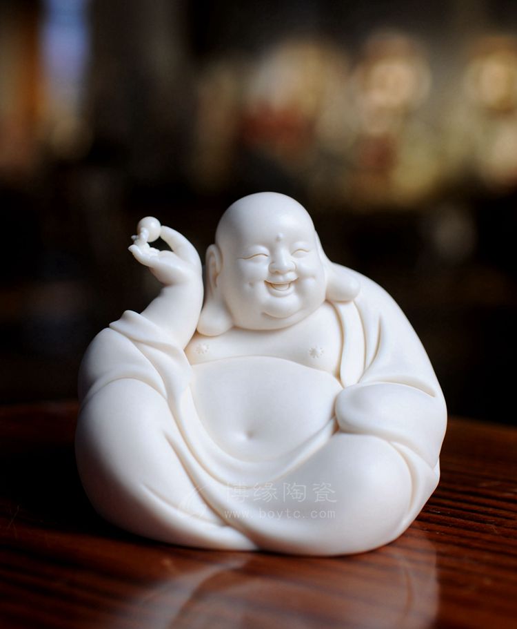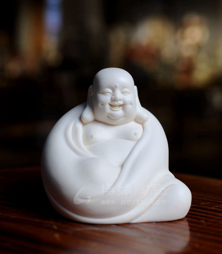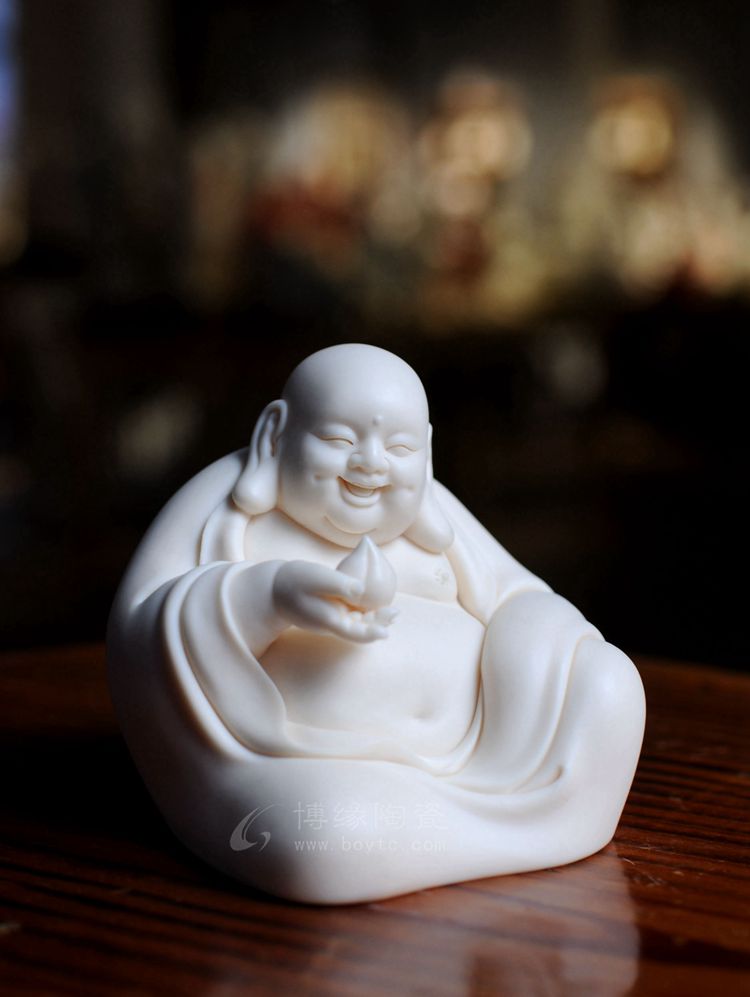 德化瓷之中,又以佛像为盛名。德化瓷所塑弥勒佛像有性格鲜明、造型优美、神态逼真、衣纹流畅、风格洗练等特点。