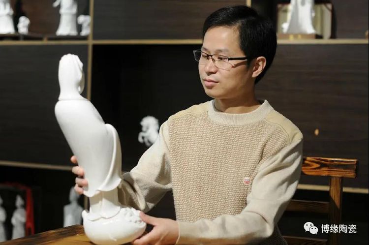 早在明代德化瓷佛像就名声在外,一代“瓷圣”何朝宗佛像名作流传后世,成为世界各大博物馆收藏的珍品,更对佛像雕塑史上产生深远的影响,形成“何派”雕塑,其开创的捏、塑、雕、刻、刮、削、接、贴八字技法延用至今。何派雕塑注重于细节之美,精益求精,故而十分着意衣纹的刻画,使线条流畅,翻转自然。观其佛像,仿佛有春风拂面,衣袂飘扬的出尘之感。