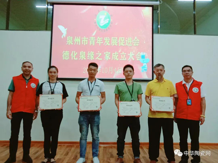 10月4日,泉州市青年发展促进会德化泉缘之家成立仪式在德化香港贝恩国际幼儿园举行。仪式上,由泉州市青年发展促进会会长潘海阳为德化泉缘之家颁发证书,由泉州市青年发展促进会监事长林荣祥为德化泉缘之家授牌,泉州市青年发展促进会常务会长洪朋友为德化泉缘之家授旗。