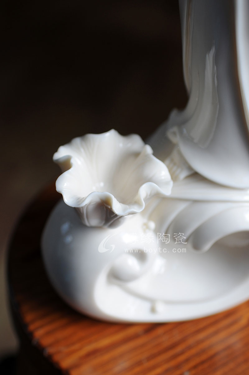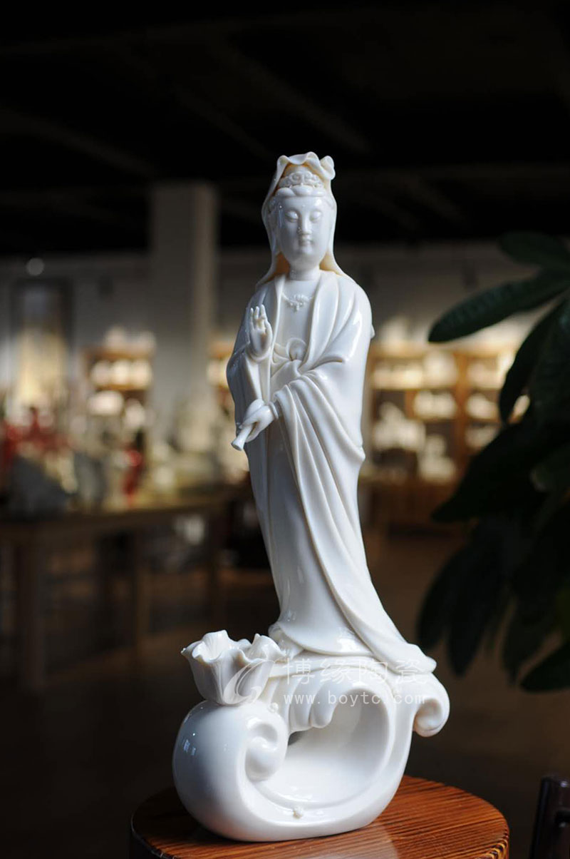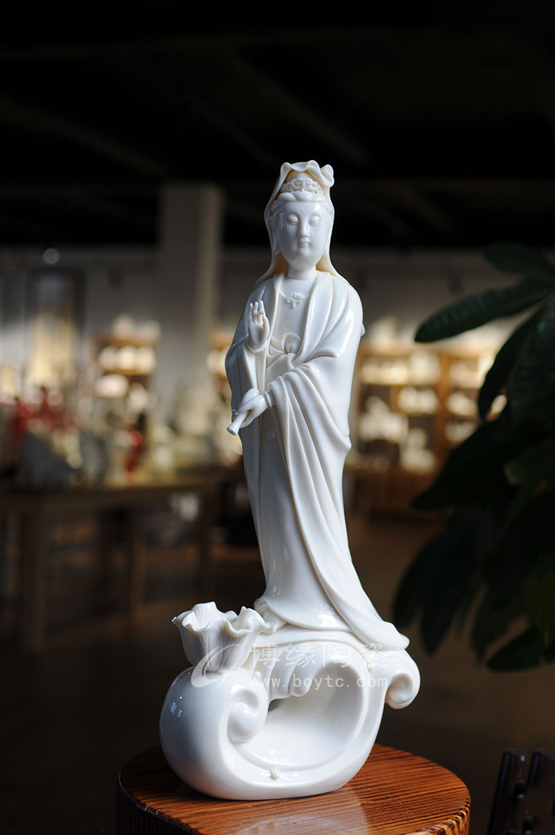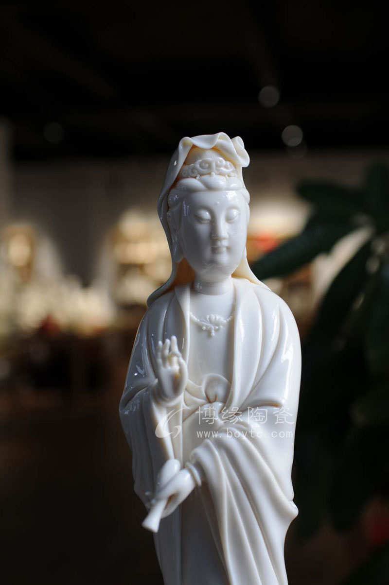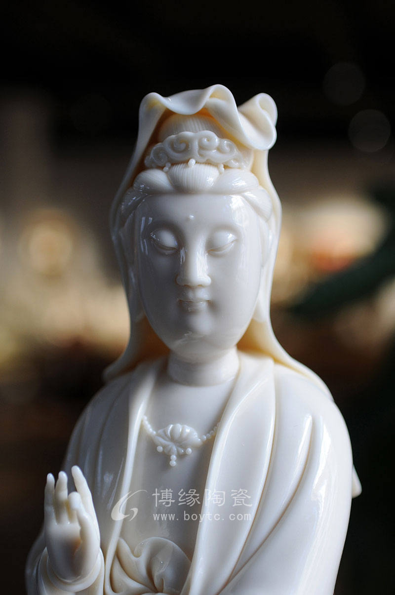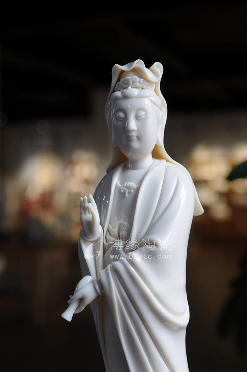 德化瓷器,以白瓷为最;白瓷之中,又以佛像为最。德化白瓷所塑佛像有性格鲜明、造型优美、神态逼真、风格洗练的特点。有一种单纯的雕塑美和原材料的质地美,最能体现佛教朴素、平和的思想。