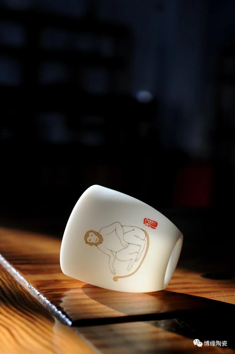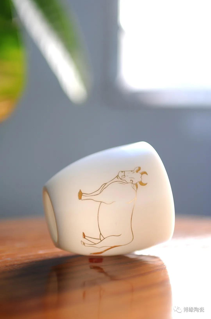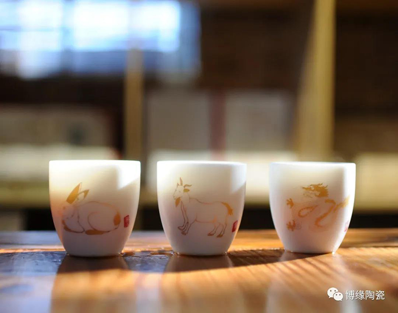 自然光下的养脂玉瓷茶具杯