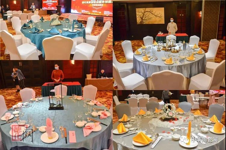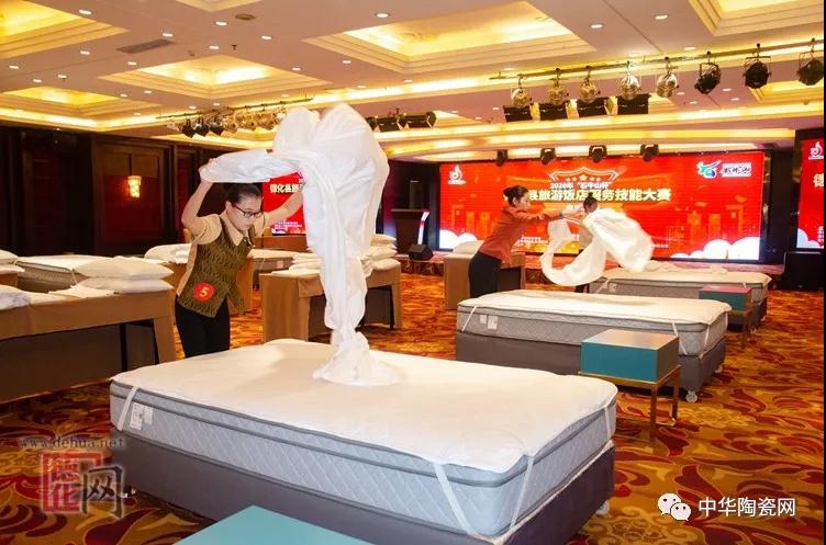 此次比赛分为中餐宴会摆台及中式铺床两个项目,采取理论知识、仪容仪表