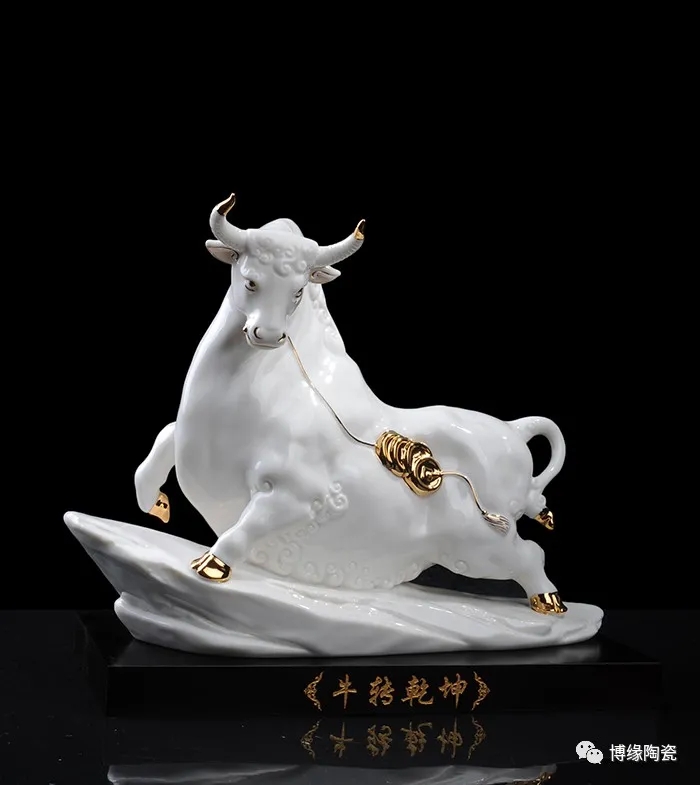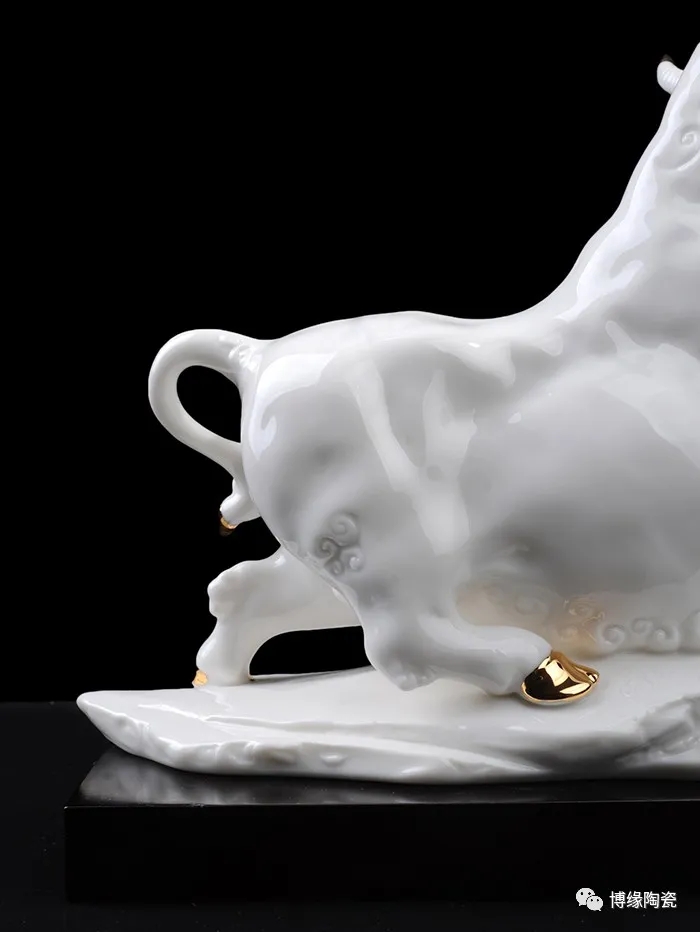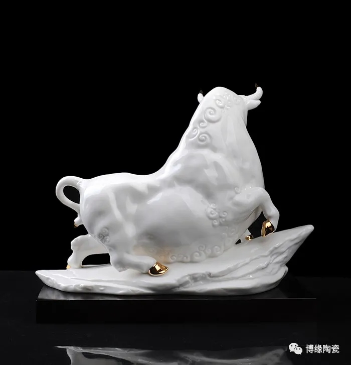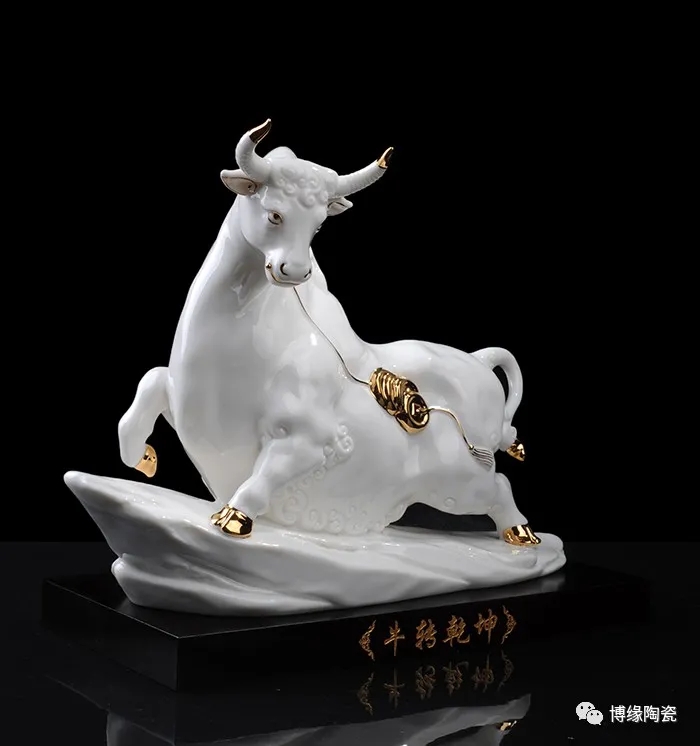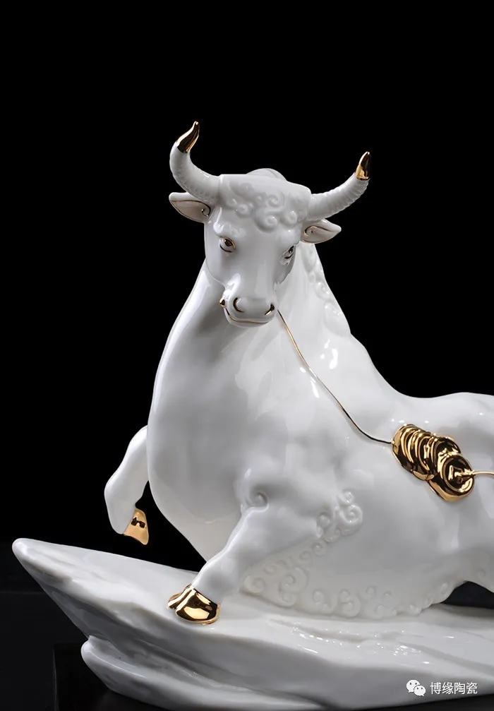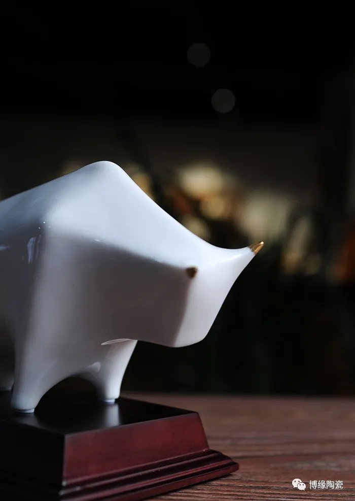 精细白瓷,描金工艺。勇猛又不失萌萌哒的牛造型!
