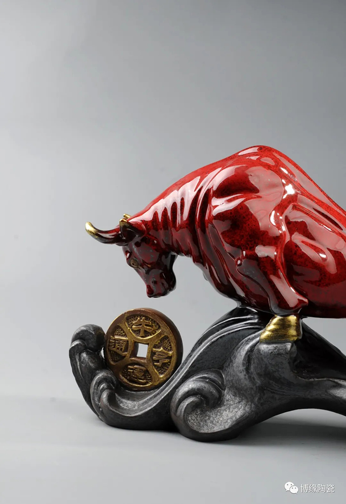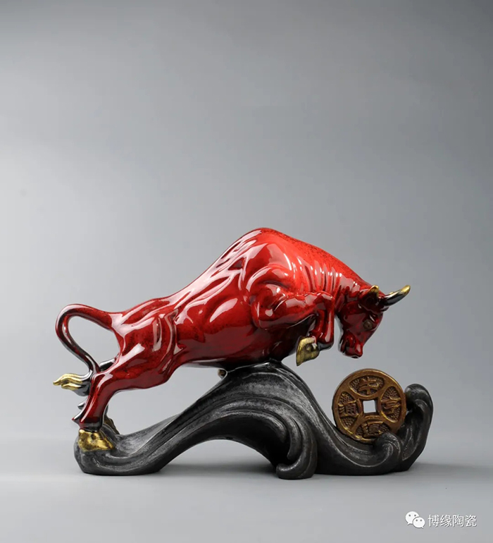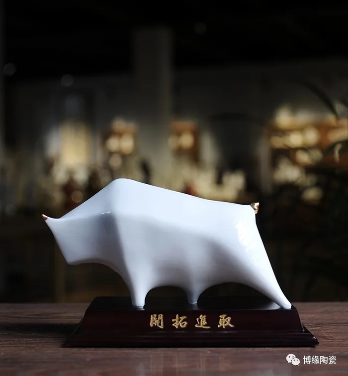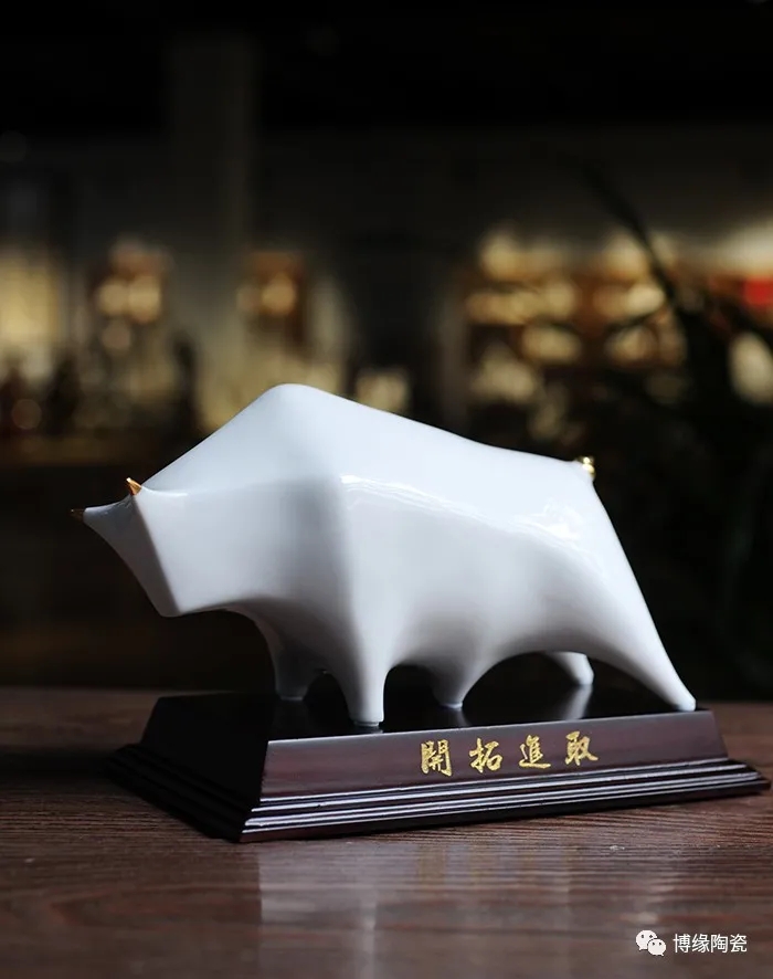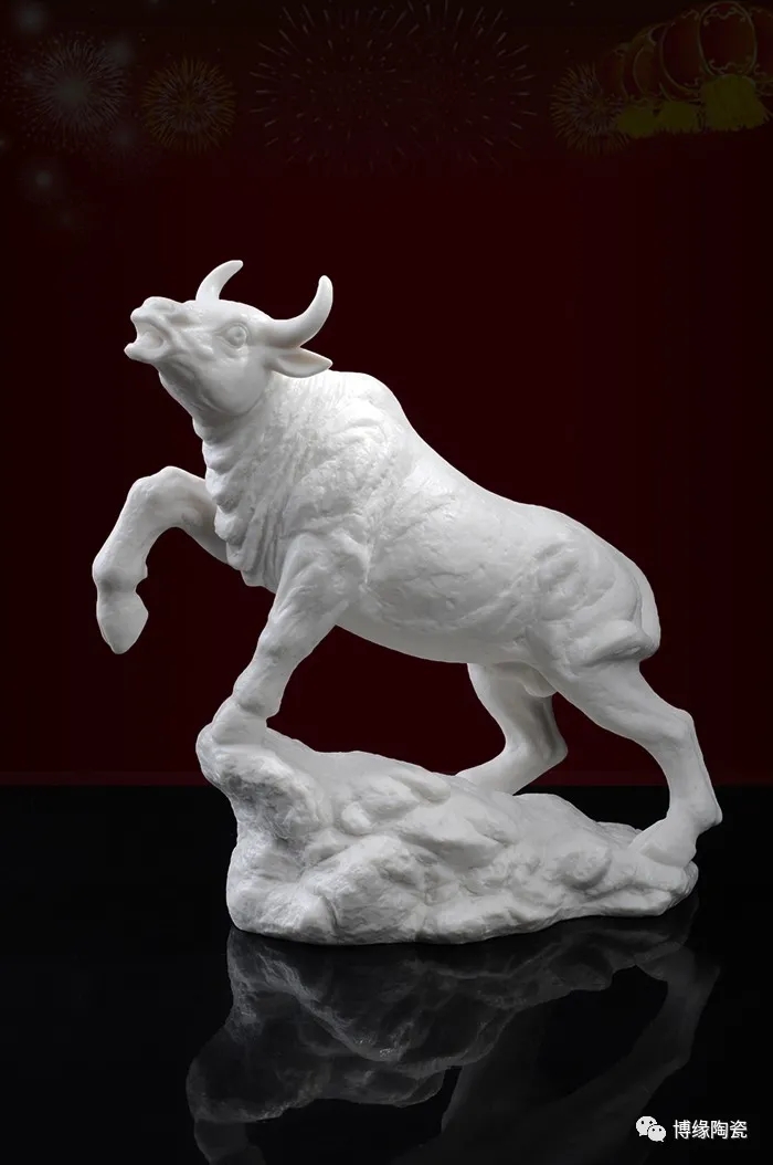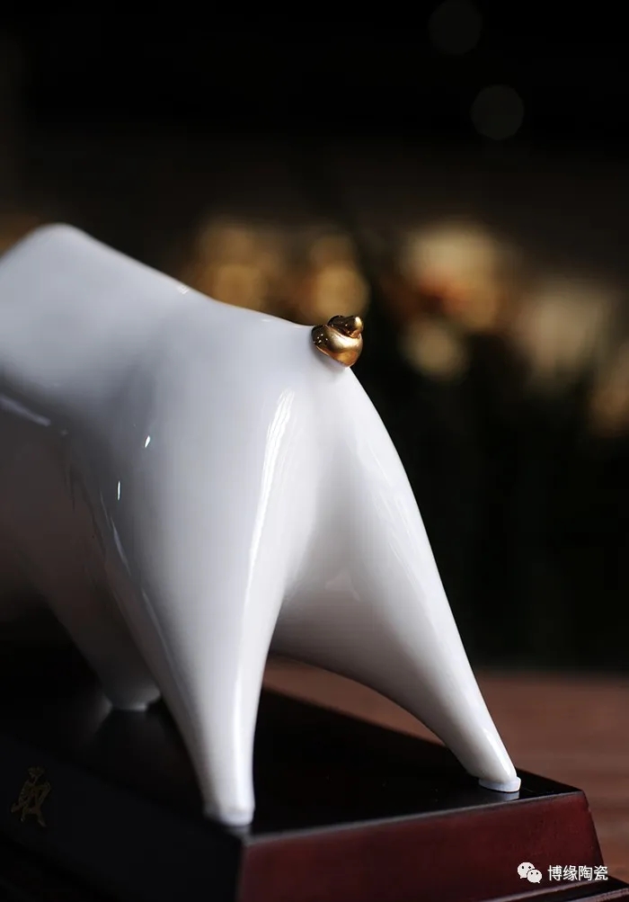 精细白瓷,描金工艺。勇猛又不失萌萌哒的牛造型!