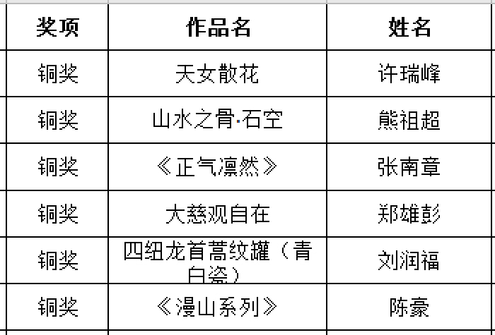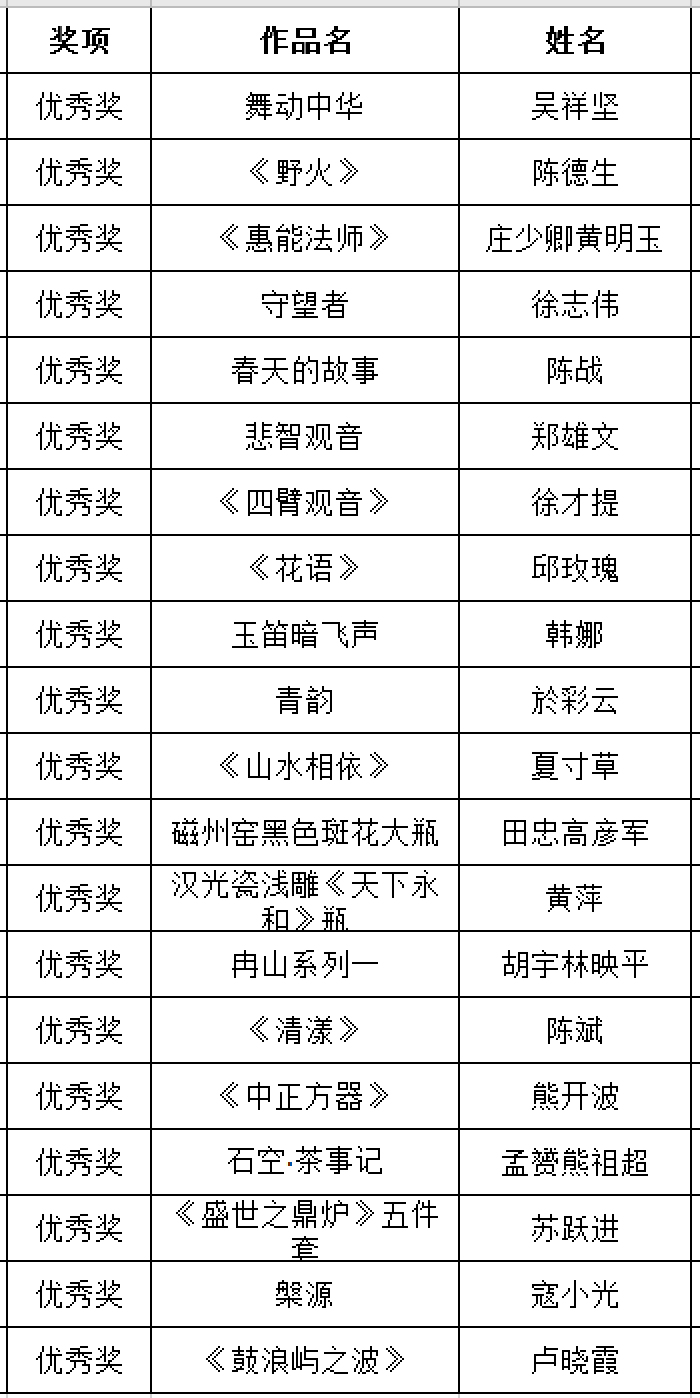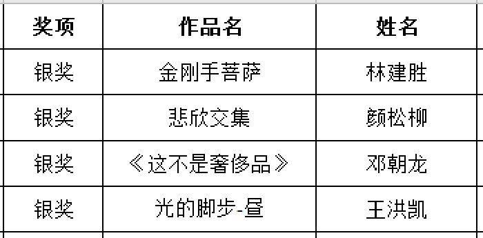 获奖名单