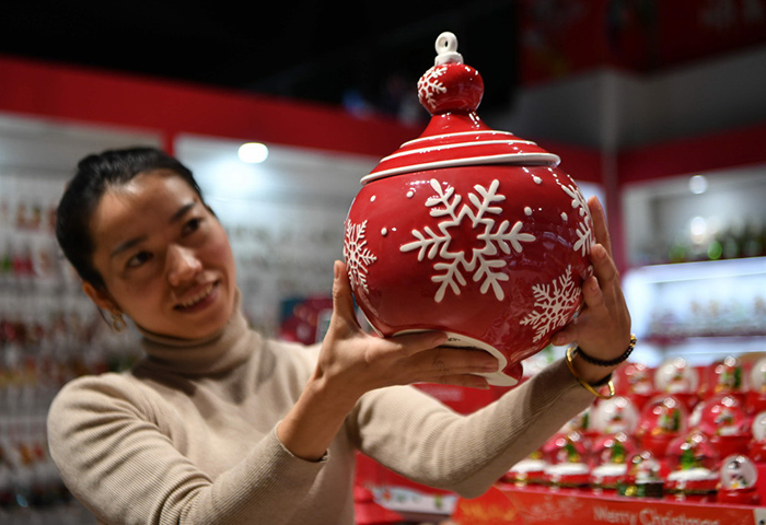 “今年国外的圣诞订单还不错,有关圣诞节的出口工艺品,我们9月底已经全部发完货。”郑鹏飞介绍,这些工艺品10月就摆上欧美商场货架,将持续销售到年底。