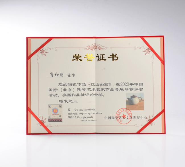 近日,由中国陶瓷艺术家肖和明创作的《其乐融融》、《江山如画》、《龙腾盛世》、《一鹿有你》茶器作品分别在北京及上海陶瓷艺术作品展上荣获金奖,其中《其乐融融》、《江山如画》荣获2020年中国(北京)陶瓷艺术名家作品展金奖,作品《龙腾盛世》、《一鹿有你》荣获2020年中国(上海)陶瓷艺术名家作品展金奖。
