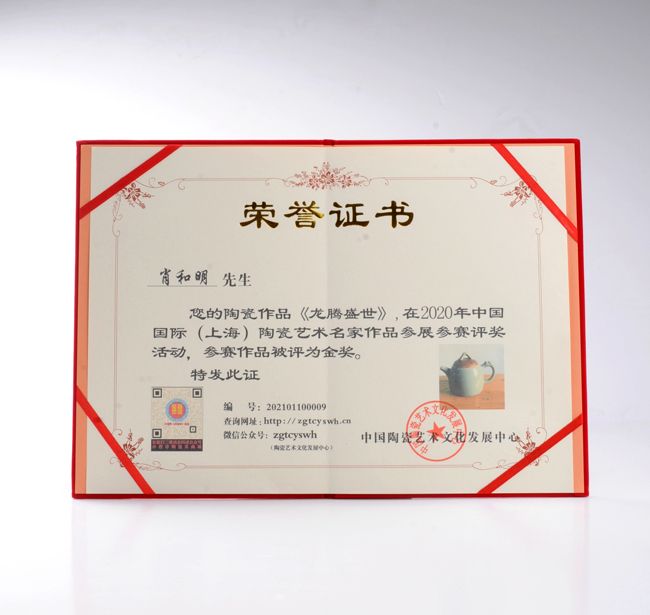 作品《龙腾盛世》荣获2020年中国(上海)陶瓷艺术名家作品展金奖。
