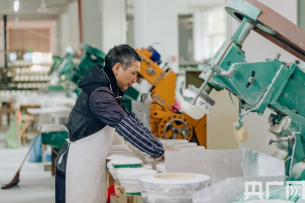 陶瓷生产车间的倒坯师傅正在检查石膏模具(央广网发 苏瑞武摄)