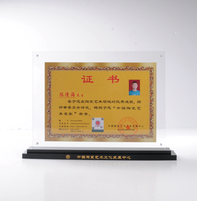 陈清海,1977年出生于世界陶瓷之都德化,中国陶瓷艺术名家、福建省工艺美术师、优秀创作坊工作室、中国陶瓷艺术文化发展中心会员。