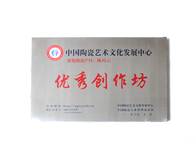 陈巧云,出生于世界陶瓷之都德化,中国陶瓷艺术家、中国陶瓷艺术非遗传承人、优秀创作坊工作室、福建省工艺美术师、中国陶瓷艺术文化发展中心会员。