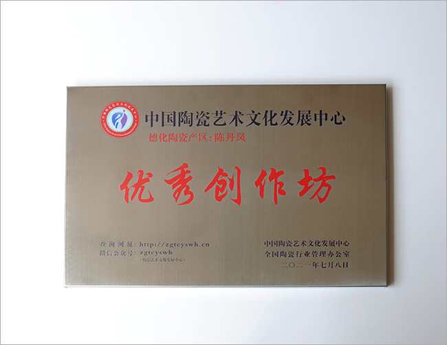 陈丹凤,出生于世界陶瓷之都德化,中国陶瓷艺术家、优秀创作坊工作室、福建省工艺美术师、中国陶瓷艺术文化发展中心会员、福建省德化博创陶瓷有限公司艺术总监。